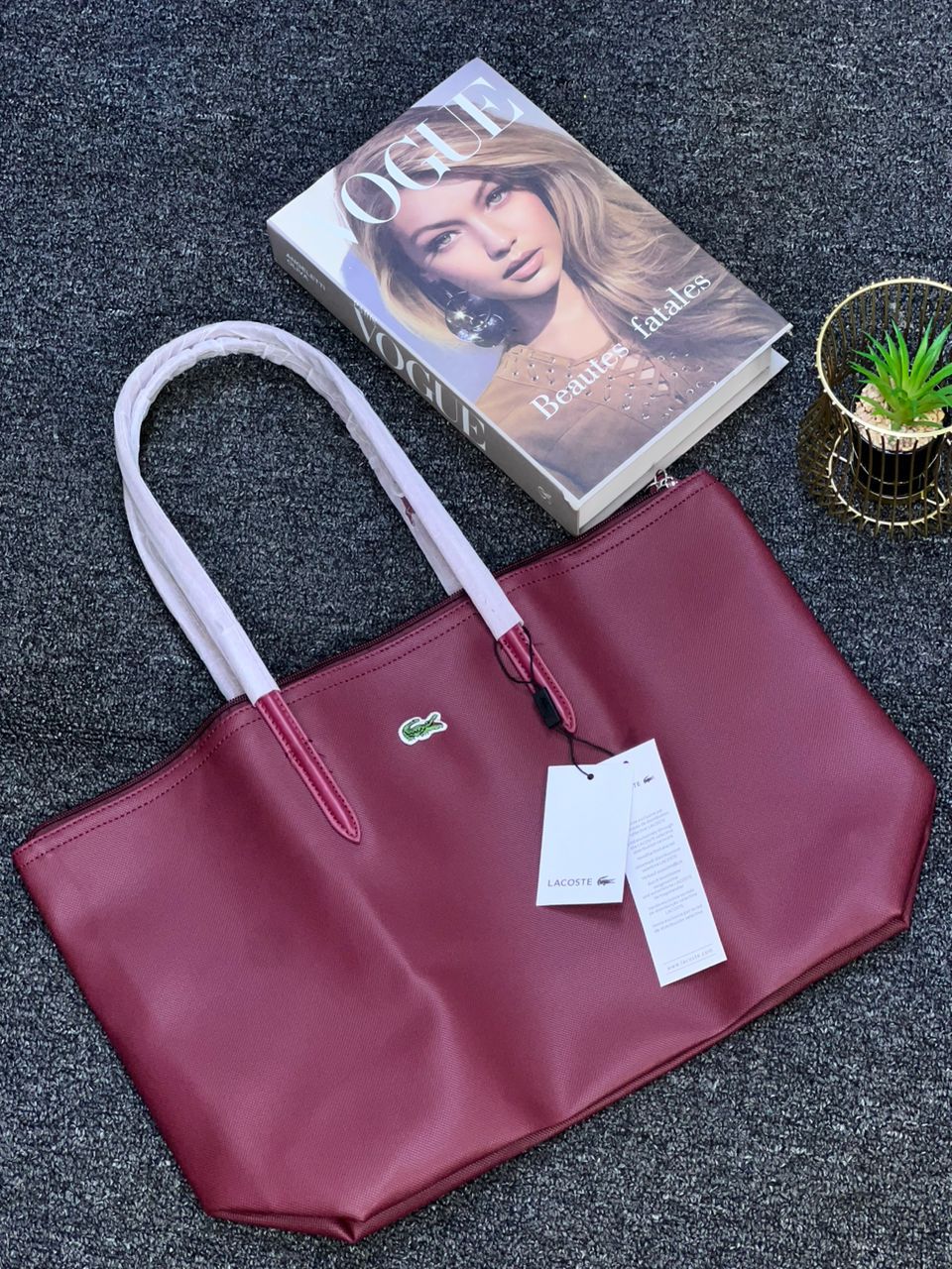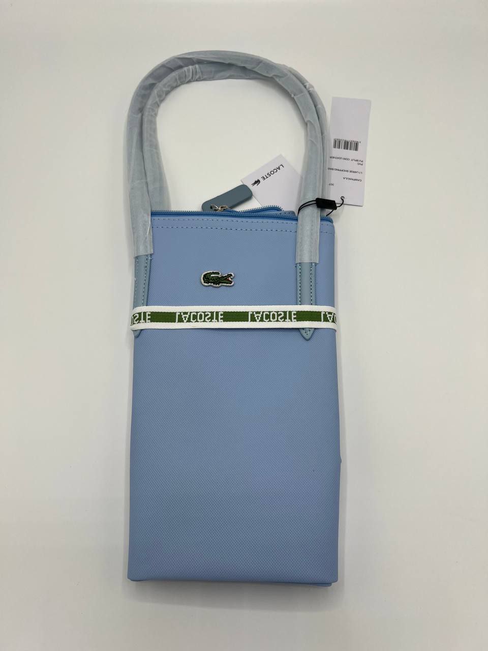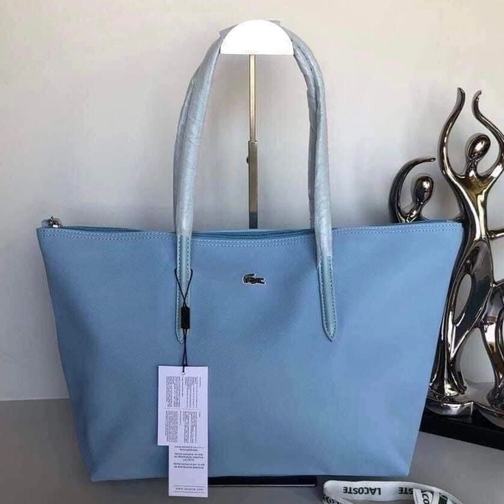 Joli et pratique ce sac Lacoste pourra vous accompagner en ville, au lycée ou à la plage cet été. Reçu en double à noel, je me sers du même sac du coup pour transporter mon pc portable, il est en PVC donc solide et étanche. Il mesure 45cm de large et 30cm de haut. Comme il n’a jamais été utilisé il a ses protections d’origine et présenté dans son emballage plastique Lacoste… idéal donc pour un cadeau